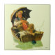 Artiste : Homme et chien de sommeil de Norman Rockwell | vieil dans des lignes de pêche du bateau à rames w/multiple