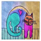 Carreau Peinture de chat abstraite Kitty Love