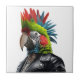 Funny Punk Rocker Parrot avec coiffure mohican portant une veste en cuir.