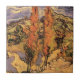 Deux Peupliers sur une route à travers les collines de Vincent van Gogh est une peinture de paysage à la nature de l'impressionnisme post vintage fin. Une scène de saison automnale avec deux peupliers sur une montagne avec une allée sinueuse et des nuages tourbillonnants dans le ciel. beaux coloris automnaux.