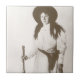 Daguerréotype occidental noir et blanc portrait photo d'une pionnière de l'ouest sauvage. Une cow-girl occidentale américaine tenant un fusil et portant un casquette cowboy, une robe et un porte-arme. Photo Annie Oakley. vers 1910
