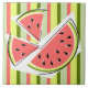 Design cool avec une touche rétro avec des morceaux stylisés de pastèque sur un arrière - plan rayé. Un design personnalisable pour personnaliser avec votre propre texte, images et idées. Une image art numérique originale.
