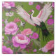 Carrelage en céramique élégant avec une motif de chinoiserie d'inspiration Art Nouveau avec des pivoines violettes et des grues blanches sur un arrière - plan vert olive. Parfait pour ajouter un accent à votre salle de bain ou cheminée ou comme un trivet rétro d'inspiration asiatique.