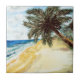 aquarelle traditionnelle paysage d'une scène de plage avec palmiers, beaucoup de sable et belle vue sur l'océan sur un carrelage en céramique