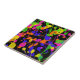 Dessin de peinture audacieux en rose chaud, jaune, orange, vert citron, violet turquoise et bleu sur un arrière - plan noir.