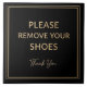 "please remove your shoes", "elegant classic black gold" "modern minimal minimalist", "classy thank you message", "fancy plaque entrance request", "luxury establishment thanks", "removing shoe before entry", "clean entranceway welcome", "stylish minimalistic house", "home take off footwear"