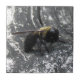 Une bourde repose sur un morceau de bois patiné pour sécher après avoir été pris sous une douche solaire. Cette photo montre les minuscules gouttelettes sur l'abeille mouillée.