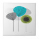 Carrelage en céramique de pod à graines rétro inspiré du milieu du siècle. 3 gousses de graines en couleurs turquoise, gris et vert citron.