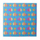 Un motif d'étoiles de mer et de poissons nageant dans l'eau bleue avec texture appliquée à l'image. Design de dessin animé. Carrelage décoratif personnalisé en céramique.