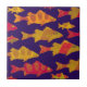 Une image colorée montrant une école des poissons dans les nuances de rouge et de l'orange sur un fond pourpre foncé
