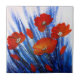 Peinture acrylique de pavots rouges, dans un champ d'herbe bleue abstraite.