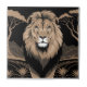 Portrait de Lion Vintage, ce design présente une illustration vintage d'un portrait d'un lion avec une apparence calme et supérieure. Le fond est un paysage de safari noir et blanc avec des arbres et des montagnes. L'image globale a un style art déco.