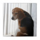 This portrait is a photo of a senior beagle making a silly, cute beagle face.