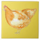 Un carrelage en céramique brillante décoré d'une poule de poulet douce dessinée au crayon et peinte à l'aquarelle sur un arrière - plan jaune vif. Vous pouvez modifier la couleur de l'arrière - plan en fonction de vos besoins.