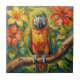 Carreau Pretty Colorful Impasto Parrot and Tropical Flower