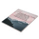 Une mosaïque en céramique artisanale inspirée représente un coucher de soleil rose sur les montagnes. Il présente la Bible Verse Psaume 91:9-11, "Si vous faites de l'Éternel votre refuge, si vous faites du Très Haut votre refuge, aucun mal ne vous conquérera; aucune peste ne viendra près de votre maison. Car il ordonnera à ses anges de vous protéger où que vous alliez." _