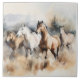 Carreau "Quatre Mustangs sauvages" Aquarelle occidentale D