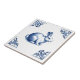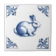 Carreau Rabbit avec des angles floraux bleus et blancs