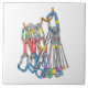 Cette conception a une illustration d'un rack d'escalade de roche qui a un ensemble de tirages rapides et un ensemble de fils / roches / écrous pendants d'un harnais d'escalade. Un design coloré pour tous ceux qui aiment l'escalade rock.