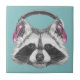 Caractéristiques de conception ce un raton laveur mignon utilisant les écouteurs roses.