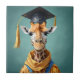 Dans une scène chaleureuse et festive, une girafe se tient fièrement debout, portant une toque de fin d'études noire élégante perchée sur sa tête, La toque est posée juste au-dessus de ses yeux expressifs, et son long cou s'étend haut comme si elle se prélassait dans le moment de réussite. Une écharpe de fin d'études flottante drape gracieusement ses épaules, ajoutant une touche de formalité. Le comportement de la girafe irradie la fierté et la joie, capturant l'essence d'une célébration d'étape unique et inoubliable.