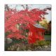 Carrelage en céramique avec une photo colorée de feuilles d'érable rouge vif et un sanctuaire shinto rouge miniature dans un jardin japonais. Sélectionnez votre taille de tuile. Photo : Point Defiance Park Jardin japonais