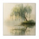 Carreau de céramique - Arbre de saule à l'aquarelle apaisante avec feuillage vert doux et reflet de lac paisible. Idéal pour les amoureux de la nature, les chercheurs de pleine conscience et ceux qui aiment les paysages tranquilles et relaxants.