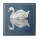 Sur ce carrelage, une aquarelle d'un beau cygne blanc flotte à travers un bassin bleu profond, son reflet est parfaitement reflété. A côté du cygne, on trouve des fleurs roses pâles. L'image est encadrée d'une fine ligne blanche. Élégant ! Assurez-vous de voir les produits correspondants dans notre magasin.