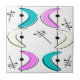 Atomic Era Boomerang Design abstrait sur rose, bleu turquoise et jaune pâle.