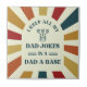 La tuile en céramique de style rétro "I Keep All My Dad-a-Base" est un must-have pour chaque figure paternelle qui aime le jeu de mots et qui donne envie de rouler les yeux. Avec son design rétro nostalgique et sa finition brillante, ce n’est pas seulement une pièce décorative, c’est un clin d’oeil quotidien à son sens légendaire de l’humour. Qu'il soit exposé sur un bureau, une étagère ou un mur, il présente fièrement son titre de maître des blagues de papa. Parfait pour la Fête des Pères, les anniversaires, les vacances, la retraite, les baby showers, ou simplement parce que c’est un cadeau plein de coeur et hilarant pour les papas, les grands-pas, les stepades, les papas bonus, les nouveaux papas et les futurs papas. Chaque coup d'oeil à ce bon gardien lui rappellera que ses plus belles blagues sont toujours entreposées, directement dans le papa-a-base.
