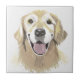 Ce carrelage en céramique porte le portrait d'une des races de chiens les plus populaires du Golden Retriever. Ce sont de charmants chiens, et font de merveilleux animaux de compagnie loyaux. Ils sont heureux, et dans mon portrait, le chien semble rire ou sourire. Un cadeau idéal, parfait comme dessous de verre pour une table basse.