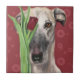 Carreau Romantic Dog with Flower Ceramic Tile - Painting