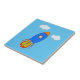 Fusée de dessin et nuages avec effet papier journal appliqués aux dessins. Design original. Carreaux céramiques personnalisés. Idée cadeau pour les enfants qui aiment la science-fiction et les aventures spatiales