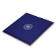 Dessin d'un vitrail d'une ancienne église européenne : une fenêtre rose, avec des touches de couleurs variées, dont des tons bleus, sur un arrière - plan bleu marine. Inposition de strass bleus. Ce motif est également disponible en rouge cardinal dans mes collections "cardinal rouge rosace".