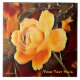 Image stylisée d'un rose jaune-orange sur un arrière - plan rouge foncé et orange. Ajoutez votre propre texte.