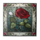 La Rose rouge avec Vine Bordure en verre de soie Look en céramique Carrelage dispose d'une seule élégante rose rouge sur un arrière - plan de gris-bleu avec une bordure de vigne rose. Ce carrelage a un style ancien en vitrail de style Art Nouveau. Cette conception est également disponible dans une image miroir. Il y a beaucoup d'applications merveilleuses pour ces magnifiques tuiles. Disponible en 2 tailles 4,25 po x 4,25 po et 6 po x 6 po.