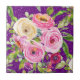 Des roses d'aquarelle luxuriants dans les tons rose, rouge, pêche et crème fleurissent sur un arrière - plan parties scintillant violet.