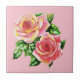 Carreau Roses roses corail rose avec Feuilles verts Jade