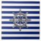 Un design en chrome argenté comme des roues sur des rayures bleu marine. Un cadeau nautique moderne.
