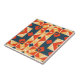 Conception moderne de carreaux décoratifs vibrants avec un motif sans couture composé de formes géométriques en rouge, bleu foncé, orange et jaune.