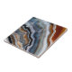 C'est une tranche multicolore de haute qualité blanc, noir, bleu, gris, orange, or, marron et terre cuite de gros plan géode agate.