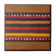 Ce design rustique à l'occidentale est composé de faux cuir entrecoupé de motifs à rayures ethniques colorées en gras rouge, vert, jaune or, orange et bleu marine indigo aux accents noirs et blancs, semblables aux carreaux de talavera mexicains, parfait pour créer un look confortable et décontracté dans votre maison.
