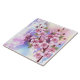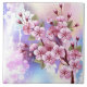 Tiré de façon artistique, branche de rose, fleurs de cerisiers sur arrière - plan pittoresque, texturé, peint sur le blanc, rose et bleu peint. Sakura rose