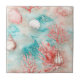 A serene coastal pattern ceramic tile featuring swirling turquoise waves, shimmering seashells, and starfish for a breezy ocean aesthetic. The design blends soft pastels with flowing wave textures, creating a dreamy beach-inspired look. Ideal for ocean lovers, summer décor fans, beach-themed gifts, and anyone who adores coastal style.