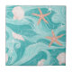 A serene coastal pattern ceramic tile featuring swirling turquoise waves, shimmering seashells, and starfish for a breezy ocean aesthetic. The design blends soft pastels with flowing wave textures, creating a dreamy beach-inspired look. Ideal for ocean lovers, summer décor fans, beach-themed gifts, and anyone who adores coastal style.