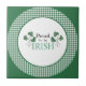 Carrelage en céramique, avec feuilles Shamrocks verts et "Fière d'être Irlandais" en scripts celtiques, sur un arrière - plan blanc avec une bordure Check En vichy. Faisant partie de la collection "Shamrocks" Posh & Painterly, ce design peut être ajusté pour s'adapter à n'importe quelle tuile. (Ajouter un cadre en bois à utiliser comme Trivet.)