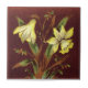 Cette tuile de conception Daffodil/Narcissus a été faite en plusieurs variations de couleurs. Nous sommes reproduits à partir de carreaux originaux peints (barbotine) de la fin du XIXe siècle. C'est la version plus sombre avec un arrière - plan de rouille chaud. (La version plus légère est listée séparément).