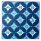tuiles dans un Shippo japonais traditionnel, ou "sept trésors" motif de cercles entrelacés avec un motif de fleurs central - fleurs bleu clair et blanc avec un indigo et bleu denim motif arrière - plan