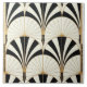 Motif rayé Art déco avec des demi-cercles noirs et blancs imitant une forme de ventilateur et des accents de bordure dorée avec rayons solaires et flanqués d'une bordure dorée.
