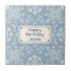 Snowflake pattern blue & white holiday custom name ceramic tile. You can edit the text in the center, change the font, change the color, size, etc. Gift these tiles as custom name coasters for each family member, for friends or teams, use them for home accents on your bookshelves, in your living rooms and bedrooms, or as mosaic wall art with other tiles. Or leave the central space empty, and use as decorative backsplash ceramic tiles.